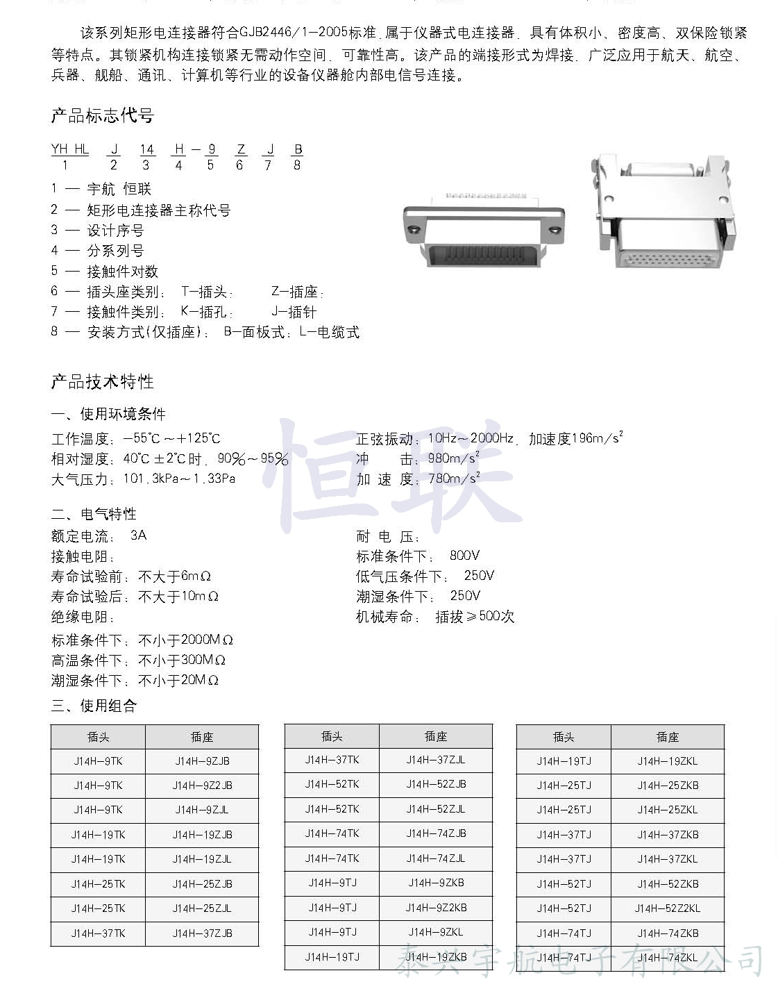 該系列矩形電連接器執(zhí)行Q/HD20037-2007詳細(xì)規(guī)范,屬于儀器式電連接器,具有體積小、密度高、雙保險(xiǎn)鎖緊等特點(diǎn),其鎖緊機(jī)構(gòu)連接鎖緊無需動(dòng)作空間,可靠性高。該產(chǎn)品的端接形式為焊接,廣泛應(yīng)用于航天、航空、兵器、艦船、通訊、計(jì)算機(jī)等行業(yè)的設(shè)備儀器艙內(nèi)部電信號(hào)連接。