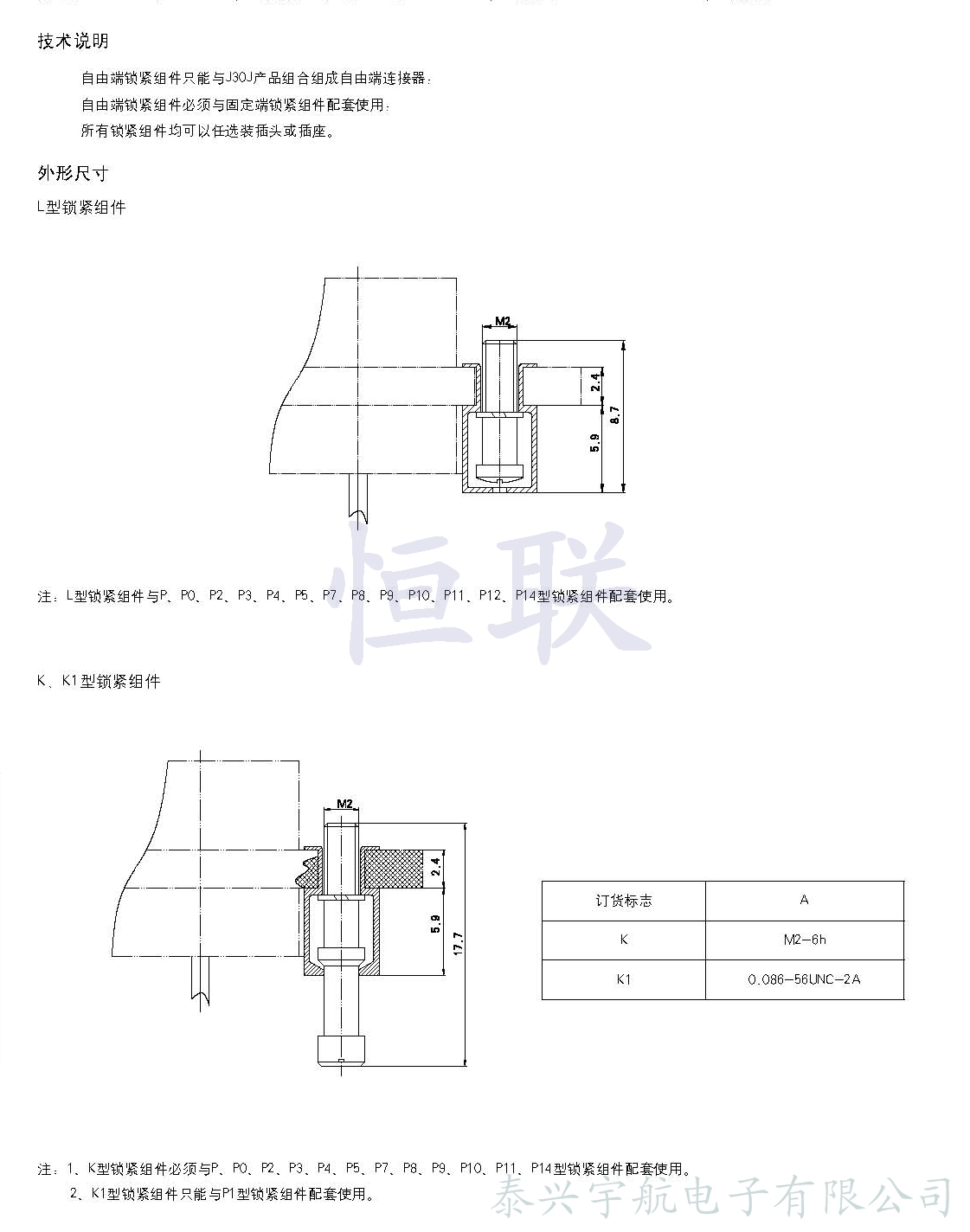 產(chǎn)品特點(diǎn)簡介 ? 接觸件尾端與導(dǎo)線的端接方式為壓接式; ? 此類產(chǎn)品可按用戶的要求進(jìn)行導(dǎo)線的布排,尾端可壓接線芯截面積為0.07~0.15mm2,在此范 圍內(nèi)可使用不同顏色的導(dǎo)線、屏蔽線或其他種類適當(dāng)規(guī)格的的導(dǎo)線。