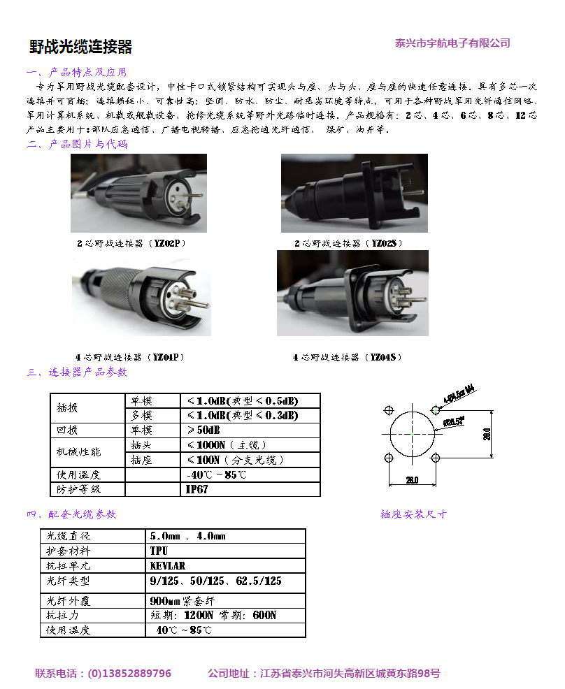 2、定位銷設(shè)計(jì)確保多芯光纖一次連接的正確性并可盲插,高精度的插針和插孔保證光纖的連接精度、互換性和重復(fù)性。