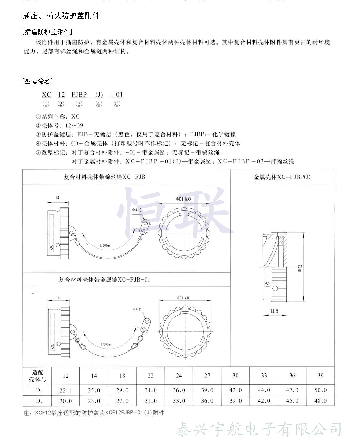 XC系列電連接器除插座、插頭已配直式屏蔽帽及直式彎式電纜夾外,為了擴(kuò)大XC系列電連接器的使用范圍,方便用戶,還配有下列專用附件,可供使用單位選擇。