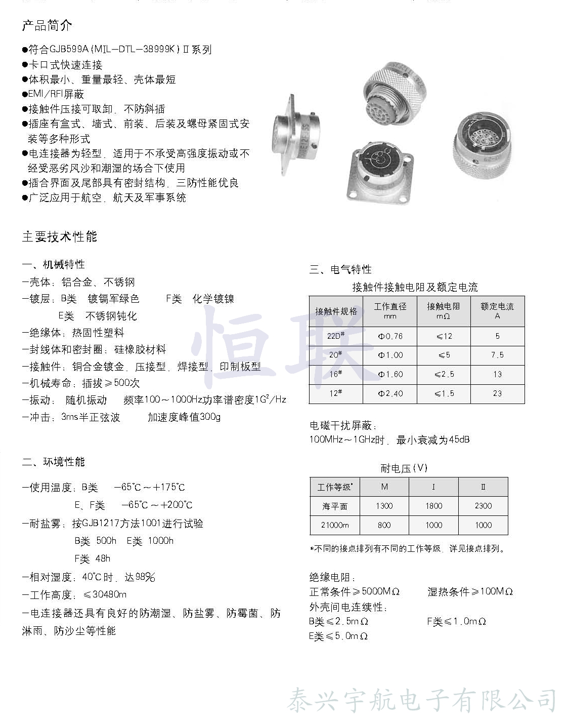 * 符合GJB 599A (MIL-DTL-38999K)Ⅱ系列