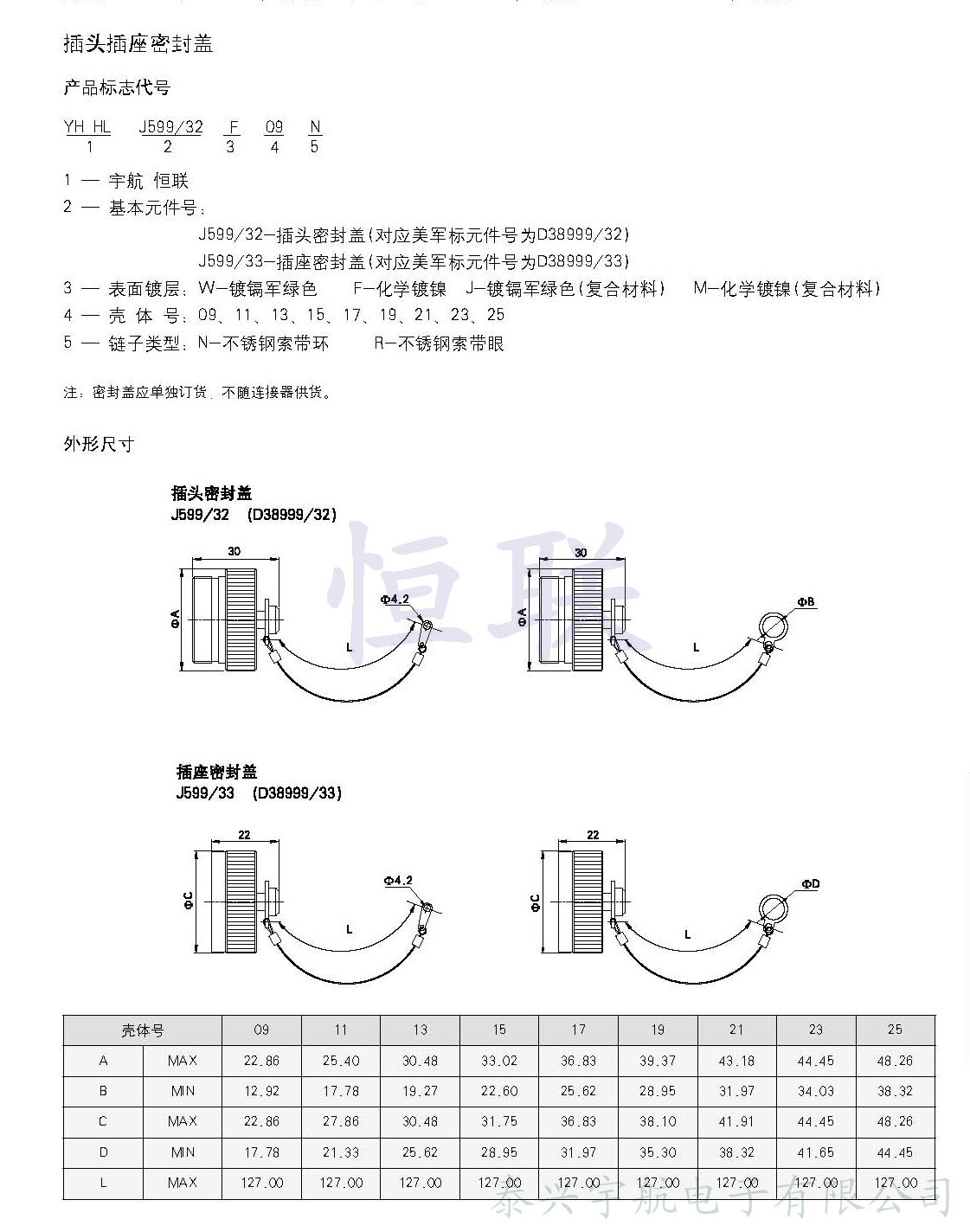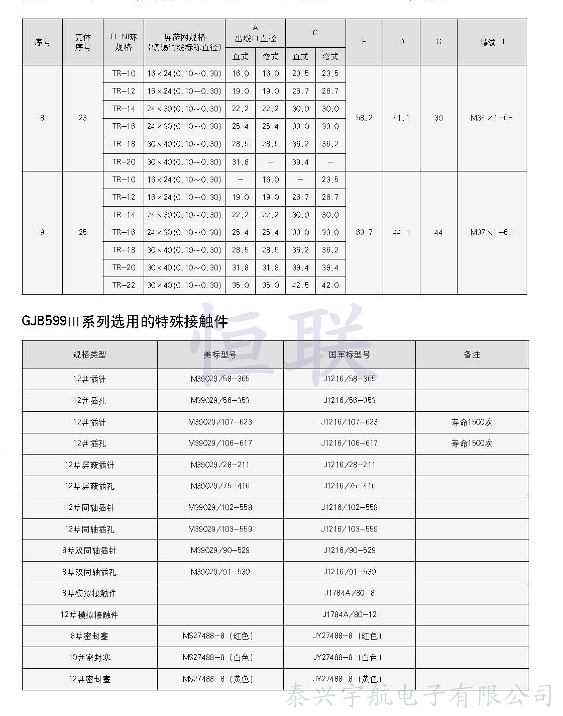 * 符合GJB599A(MIL-DTL-38999K)Ⅲ系列