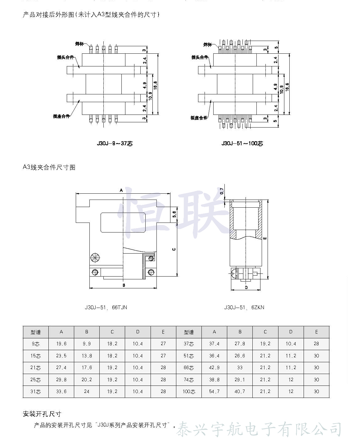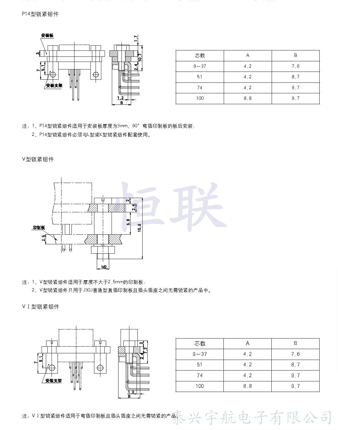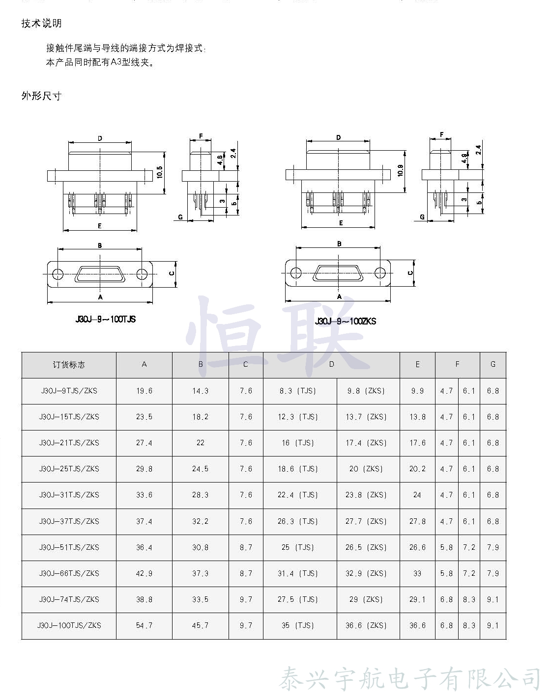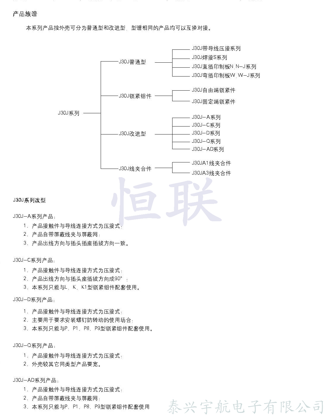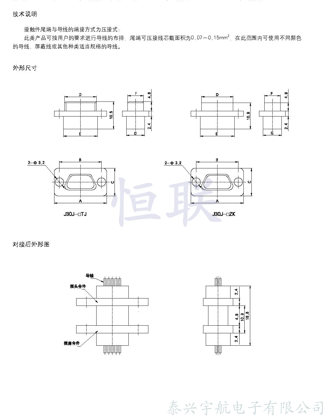產(chǎn)品特點(diǎn)簡介 ? 接觸件尾端與導(dǎo)線的端接方式為壓接式; ? 此類產(chǎn)品可按用戶的要求進(jìn)行導(dǎo)線的布排,尾端可壓接線芯截面積為0.07~0.15mm2,在此范 圍內(nèi)可使用不同顏色的導(dǎo)線、屏蔽線或其他種類適當(dāng)規(guī)格的的導(dǎo)線。