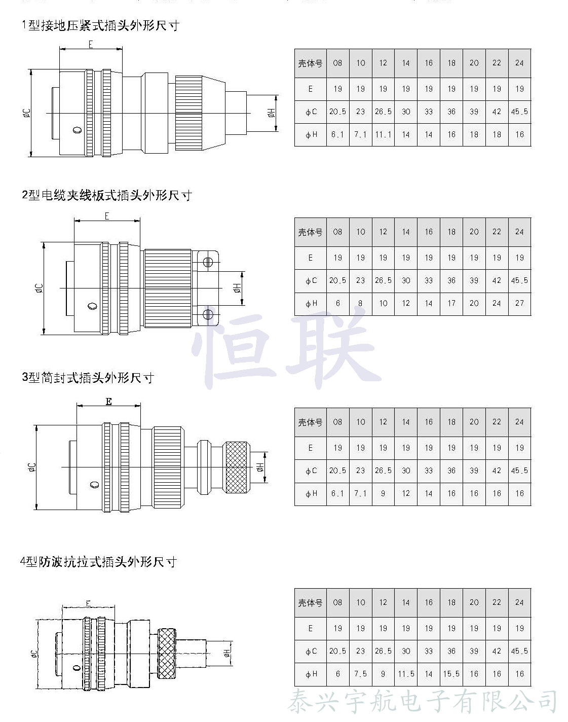 本系列航空插頭包括公制、英制、電源三大類電連接器。均為內(nèi)螺旋槽卡銷鎖緊式。具有快捷連接與分離,體積小、重量輕,密封性能好,抗拉性能優(yōu)之特點(diǎn)。插頭電纜罩有七種安裝方式,殼體分屏蔽與非屏蔽,電纜引出有直式和彎式,端接方式為焊接式。品種多,規(guī)格全。均參照GJB101A—97,GJB598A—96,MIL—C—26482等標(biāo)準(zhǔn)的要求。適用于戰(zhàn)略、戰(zhàn)術(shù)系統(tǒng),野外作業(yè)等電訊號、電能的連接。